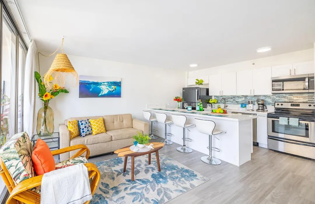 Nestled in Waikiki, known for its popular surf beach, the 56 m² 19Th Fl, Ocean Views, 1 Block To Beach, Parking apartment is nearly a 17-minute stroll from such cultural places of interest as US Army Museum of Hawaii. Welcoming guests with a Jacuzzi, a sauna and an outdoor swimming pool, this 1-bedroom apartment lies in walking distance from Honolulu Petting Zoo.